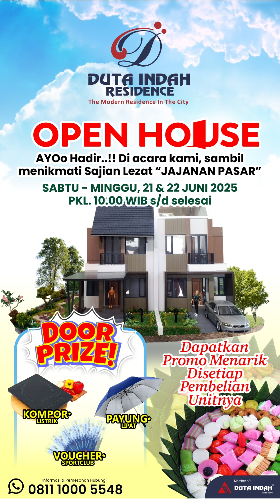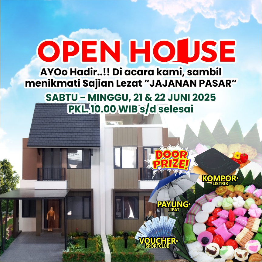Yuk ajak orang-orang tercintamu🥰 untuk datang di acara 📢 OPEN HOUSE kami!! sambil menikmati lezatnya 🍕 Jajanan Pasar sambil diskusi ringan untuk mencari tahu Properti Ideal yang tepat untukmu.